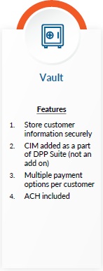 *Includes access to the integrated terminals, DPP Virtual Terminal, Vault, Recurring Payments, Online Form, Invoicing via Payment Link, Fraud Tools, Multi-MID and Item Management; plus processing fees.*